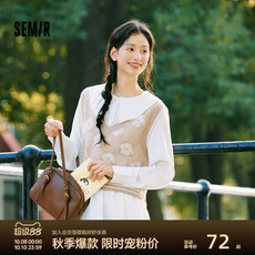 森马长袖衬衫女大翻领雪纺衬衣短背心俏皮可爱春季宽松两件套气质