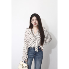 大眼LARGE EYE 意式街头 蝴蝶结雪纺长袖上衣法式波点衬衫通勤秋