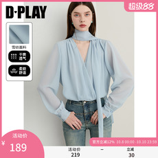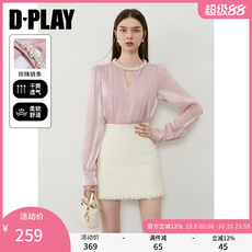 DPLAY2025年秋季新款粉色衬衫女法式气质独特雪纺衬衣长袖上衣