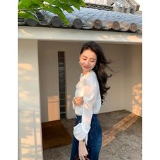 Exclusive type 韩国小众复古森系微透雪纺V领花边百搭长袖衬衫女