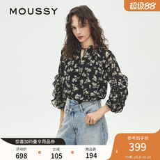 花边衬衫女长袖碎花秋装新款显瘦V领洋气中国风雪纺衫喇叭袖上衣