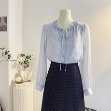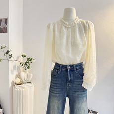 荷叶边衬衫女法式秋季高级感宫廷风雪纺立领花边长袖木耳边上衣