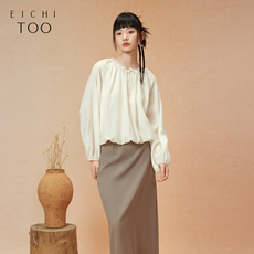法式气质垂坠丝滑捏褶简约通勤长袖衬衫女秋季宽松显瘦百搭雪纺衫