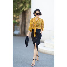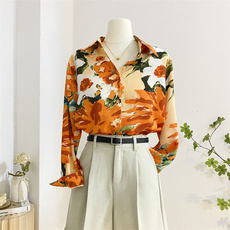 大象和长颈鹿 温柔金橙色 雪纺印花飘带衬衫 宽松长袖防晒 206202