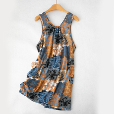 E23-3夏季新品女装雪纺印花圆领无袖背心连衣裙百搭直筒裙子