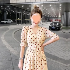 2022欧美跨境新款亚马逊方领雪纺波点短裙时尚灯笼袖女装连衣裙