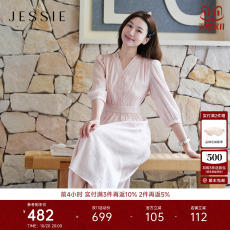 【博主同款】JESSIE小香风气质连衣裙女装七分袖V领收腰雪纺裙子