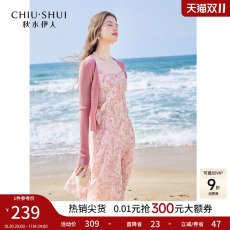 秋水伊人雪纺吊带连衣裙秋装新款两件套海边度假今年流行套装女装
