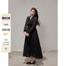 未风小个子裙子女秋新款女装气质显瘦早秋长袖雪纺连衣裙法式长裙