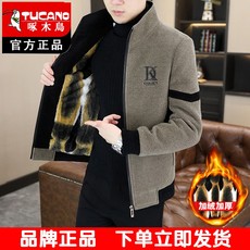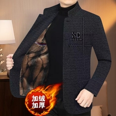 毛呢外套男士休闲加绒加厚夹克秋冬新款中青年立领男装大衣爸爸装