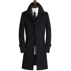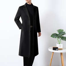 男装新秋冬单排扣保暖羊绒长款中青年毛呢外套商务修身大衣风衣
