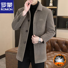 罗家同款羊毛呢大衣男中长商务加棉休闲青年纯色高端双排呢子外套