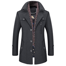 新秋冬男装毛呢新风衣修身商务时尚外套单排扣中青年厚实休闲大衣