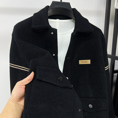 双面羊毛呢大衣男士秋冬季短款宽松连帽夹克青年休闲保暖高端外套