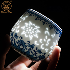 高温釉中彩青花瓷主人杯高端陶瓷个人专用喝茶杯子景德镇玲珑单杯