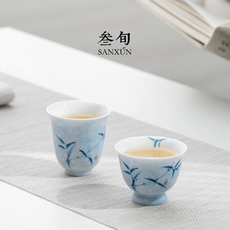 叁旬手绘青花竹影茶杯主人杯家用陶瓷杯单杯个人专用品茗杯子高档