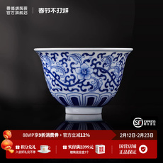 景德镇仿明永乐压手杯缠枝莲主人杯茶杯景德镇陶瓷茶杯青花瓷