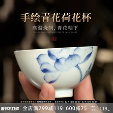 景德镇品茗杯手绘薄胎茶杯主人杯单杯青花瓷个人陶瓷功夫小茶碗杯
