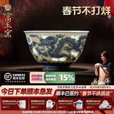景德镇官方陶瓷柴窑青花釉里红功夫茶杯个人专用喝茶主人杯茶具
