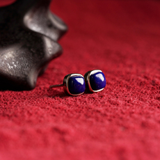 「安蓝」青金石小巧耳钉女925纯银防过敏几何方形耳饰简约百搭款