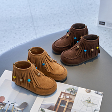 2025冬季新款儿童靴子韩版女童加绒保暖靴中大童女孩流苏公主靴潮