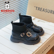 巴布豆真皮女童鞋子儿童马丁靴子袜靴2025秋冬季新款大童加绒棉靴