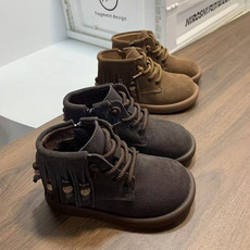 儿童靴子2025秋冬新款男女童英伦风加绒棉靴中大童软底防滑马丁靴
