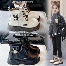 女童靴子春秋黑色单靴中大童英伦风儿童短靴小学生马丁靴男孩单靴