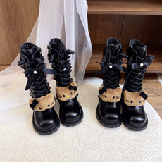 女童皮靴甜美公主靴2025秋季新款儿童马丁靴中大童蝴蝶结女宝靴子