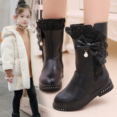 白色洋气女童靴子秋季蝴蝶结皮靴高筒靴儿童长靴公主靴中大童单靴