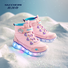 Skechers斯凯奇女童甜美靴子秋冬新款爱心发光鞋中大童休闲闪灯鞋
