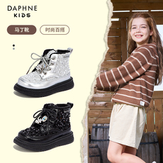 泰兰尼斯春秋靴子防滑儿童低筒中大童户外女童学生高帮休闲马丁靴