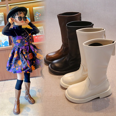 女童皮靴美拉德儿童马丁靴中大童女孩高筒靴子长筒靴靴子秋冬加绒
