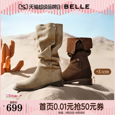 达芙妮长筒靴女2026夏季新款复古民族风西部牛仔靴内增高堆堆靴子