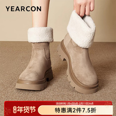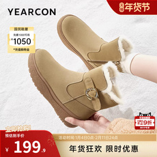意尔康女鞋2025冬季新款加绒保暖棉鞋厚底短筒雪地靴户外休闲短靴