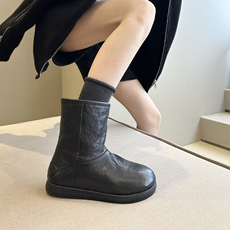 大东女靴短靴2025冬季新款圆头复古绒面堆堆靴平底百搭时装雪地靴