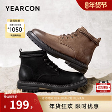 意尔康男鞋2025冬季真皮短靴高帮皮鞋男士加绒马丁靴工装鞋户外