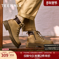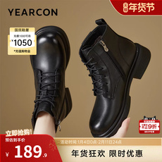 意尔康女鞋冬季羊皮复古户外休闲加绒马丁靴粗跟英伦风短靴小个子
