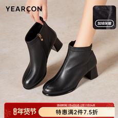 意尔康女鞋2025冬季法式短靴女粗跟气质英伦风加绒女靴舒适及踝靴