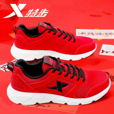 特步男鞋跑步鞋男软底休闲鞋网面透气减震鞋子新年红色男士运动鞋