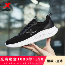 特步跑步鞋男鞋秋季透气黑色运动鞋休闲鞋软底减震轻便网面女鞋子
