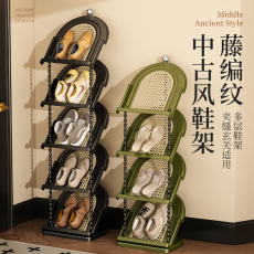 中古风多层鞋架家用款门口拖鞋收纳小型入户门后鞋子收纳神器鞋柜