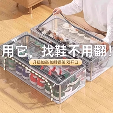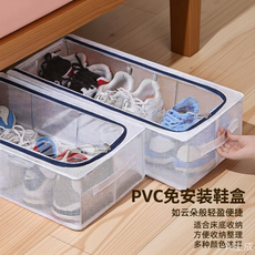 鞋盒收纳盒大容量加厚透明鞋盒防尘宿舍床底可折叠免安装鞋架PVC