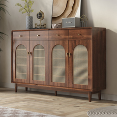 包邮田园藤编鞋柜免安装家用简易储物柜实木鞋柜大容量鞋架特价