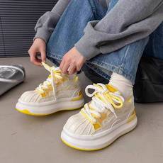 鲁鲁蛋 韩系板鞋女款2025新款春秋百搭chic鞋子贝壳鞋厚底小白鞋