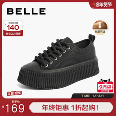 百丽女鞋加绒板鞋女春季新款鞋子运动鞋贝壳饼干底休闲鞋A6C1DAM4
