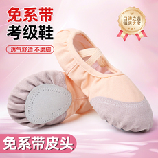 舞蹈鞋儿童女软底练功鞋男女童跳舞专用肉粉色免系带成人芭蕾舞鞋