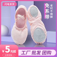 免系带舞蹈鞋儿童女软底女童男童瑜伽肉粉色练功中国成人芭蕾舞鞋