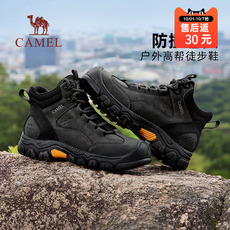 骆驼男鞋高帮2025秋冬季新款耐磨防滑防水登山鞋徒步运动潮鞋黑色
