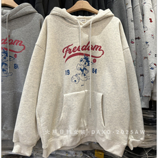 韩国东大门2025秋冬新款加绒帽衫可爱卡通字母印花连帽宽松卫衣女